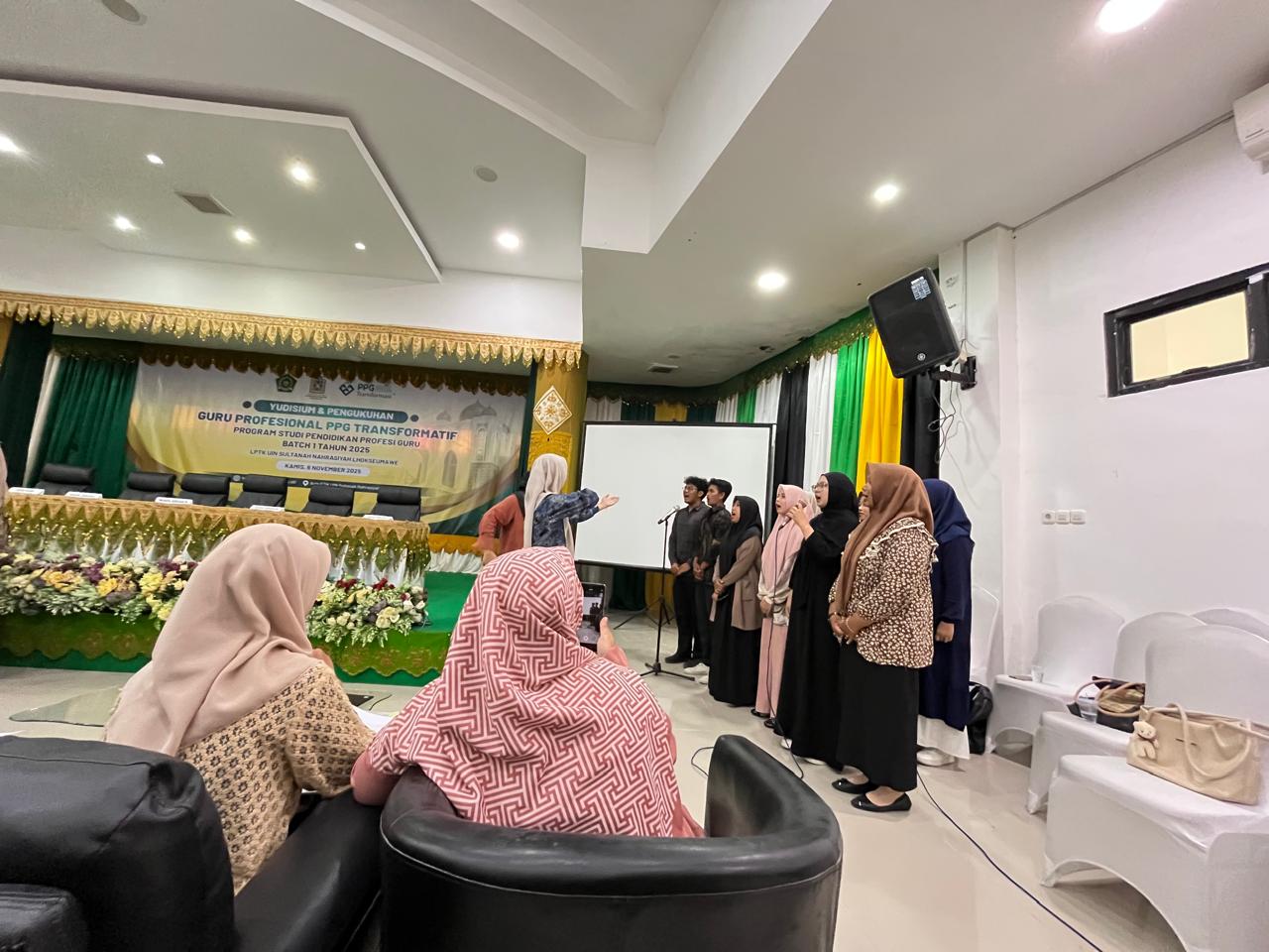 Lhokseumawe – Program Studi Pendidikan Profesi Guru (PPG) LPTK UIN Sultanah Nahrasiyah Lhokseumawe melaksanakan kegiatan Gladi Resik Yudisium PPG Batch 1 Tahun 2025 pada Rabu, 5 November 2025 bertempat di Aula FTIK Lantai 3, Gedung Fakultas Tarbiyah dan Ilmu Keguruan. Kegiatan berlangsung mulai pukul 14.00 WIB hingga selesai dengan suasana penuh semangat dan kekeluargaan.