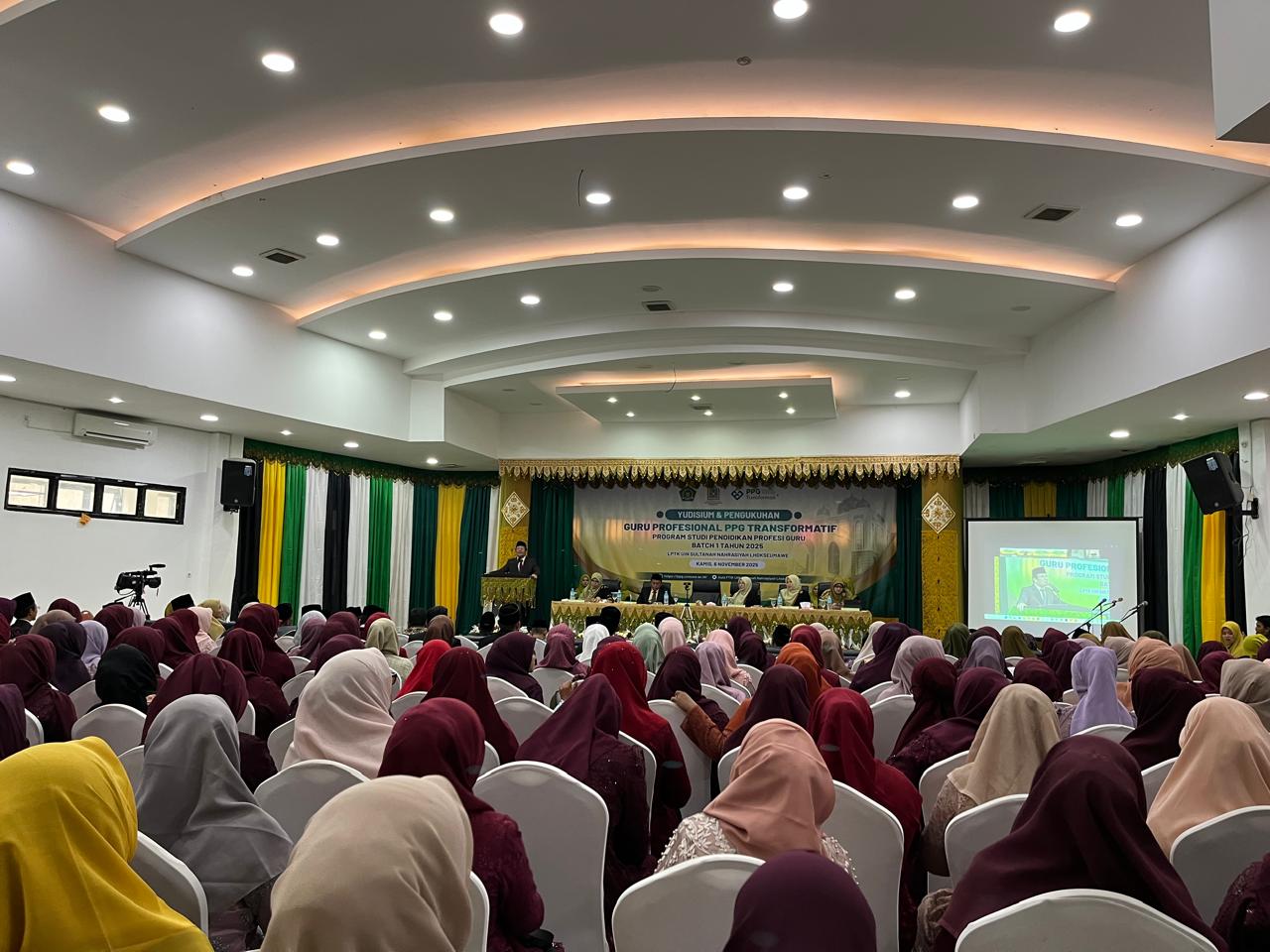Kegiatan ini menjadi momentum bersejarah bagi 1.115 guru profesional yang resmi dikukuhkan setelah menyelesaikan seluruh tahapan pendidikan profesi. Jumlah tersebut terdiri dari 1.101 mahasiswa PPG Batch 1 Tahun 2025 dan 14 mahasiswa retaker.